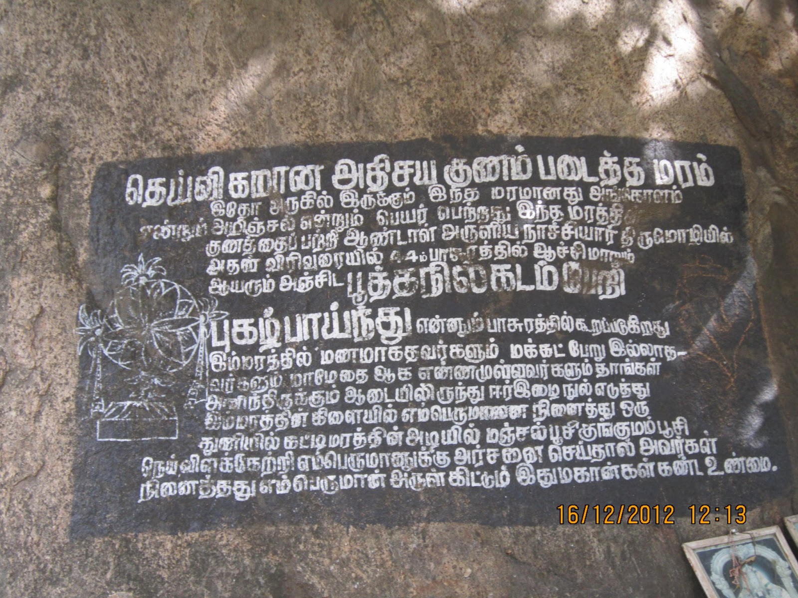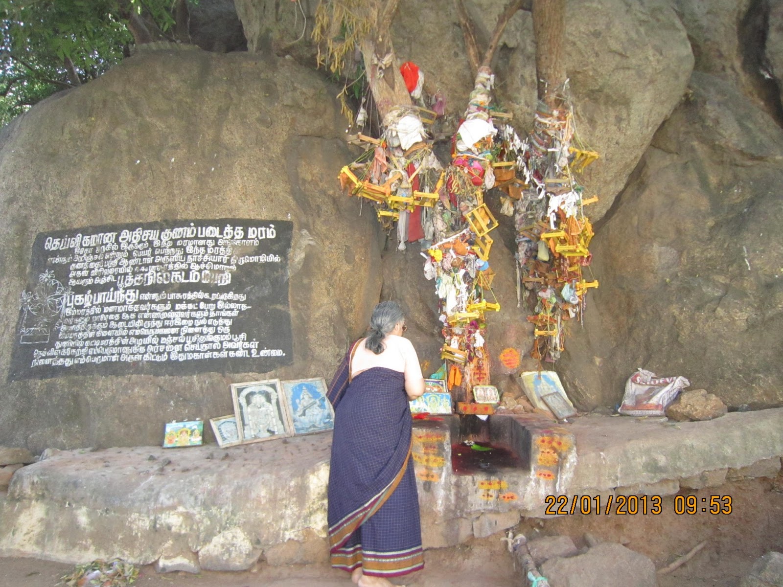 Just ahead of the temple is a fig tree. At the foot of this tree are a number of snake-stones which are sued as places of snake worship.