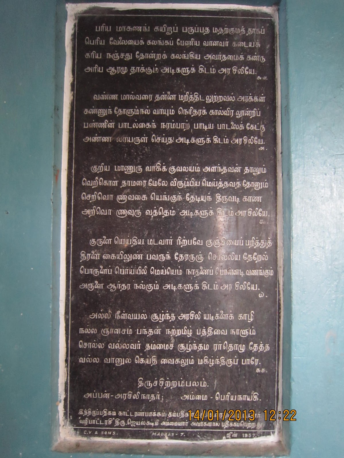 Visited on 14th January 2013Moolavar : Arasaleeswarar ( Suyambu murthy)